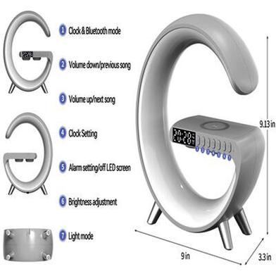 Bluetooth Version: 5.2 256 Lighting modes: Yes Wireless Fast Charging: 15W Operating Voltage: 36V Speaker Power: 10W Use Time: 2-3 Hours Charging Port: Type C Connector Type: USB Mounting Type: Tabletop Alarm Clock: Yes Controller Type: Button Control Audio Output Mode: Stereo Certifications: FCC Supported Internet Services: YouTube, Music