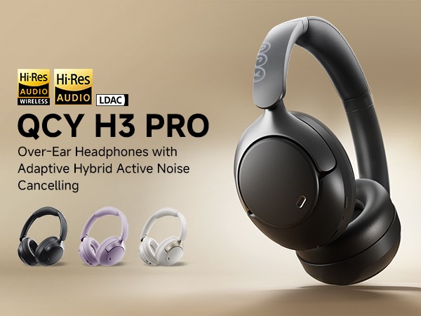 • Long-lasting 55 hours playback • Enjoy 5 hours of playback with only a 10-minute charge • 60ms ultra-low latency gaming mode • Compatible with both wired & wireless connections • Dual connection supported * 6 months official warrenty [50dB Active Noise Cancellation]: QCY H3 Pro headphones feature 50dB adaptive active noise cancellation (ANC), intelligently detecting ambient noise and optimizing noise reduction to block 99.6% of external disturbances, delivering an immersive, crystal-clear audio experience. [Hi-Res Audio & LDAC]:Powerful 40mm titanium-plated diaphragms deliver Hi-Res sound with LDAC decoding, enhanced by 360° spatial audio for immersive 3D acoustics. [Custom App & Dual Connectivity]:Personalize EQ settings, ANC modes, and touch controls via QCY App. Effortlessly switch between two devices (Android/iOS) with multipoint pairing. [55H Endurance & Quick Charge]:55-hour playtime (ANC off) with 10-minute charge for 2-hour playback. Includes 3.5mm jack for wired use during charging. [Bluetooth 5.4 & Crystal Clear Calls]:Advanced Bluetooth 5.4 delivers faster speeds and stable connections for seamless audio. Featured with 3 microphones with Al, it enhances voice pick-up over the noise to ensure you sound crystal clear on the other end. [Upgrade Degsin & All Day Comfort]:Featuring premium protein leather ear cushions with memory foam for a snug fit, combined with an adjustable