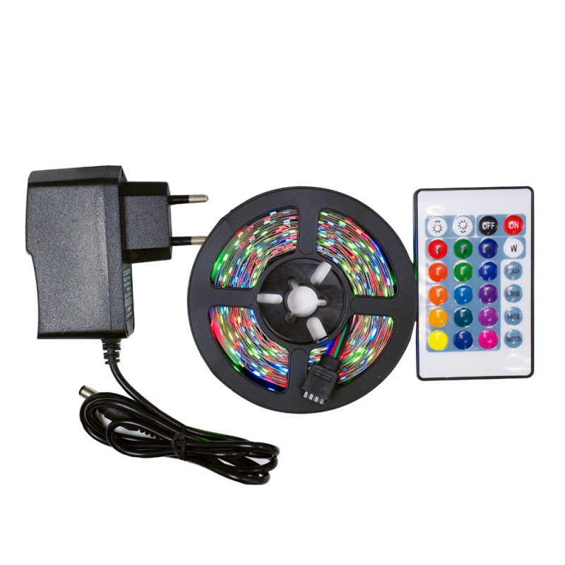 Size: 5 meter An RGB Waterproof Remote Control Color Changing LED Strip Light Complete Kit typically includes: RGB LED Strips: Flexible, color-changing strips with Red, Green, and Blue LEDs. Waterproof Design: Protects against moisture (IP65/IP67 rating), suitable for indoor and outdoor use. Remote Control: Adjust colors, brightness, and lighting effects (flash, fade, etc.). Power Supply: Adapter to convert AC to low-voltage DC for LEDs. Connectors: To link strips together or extend the length.