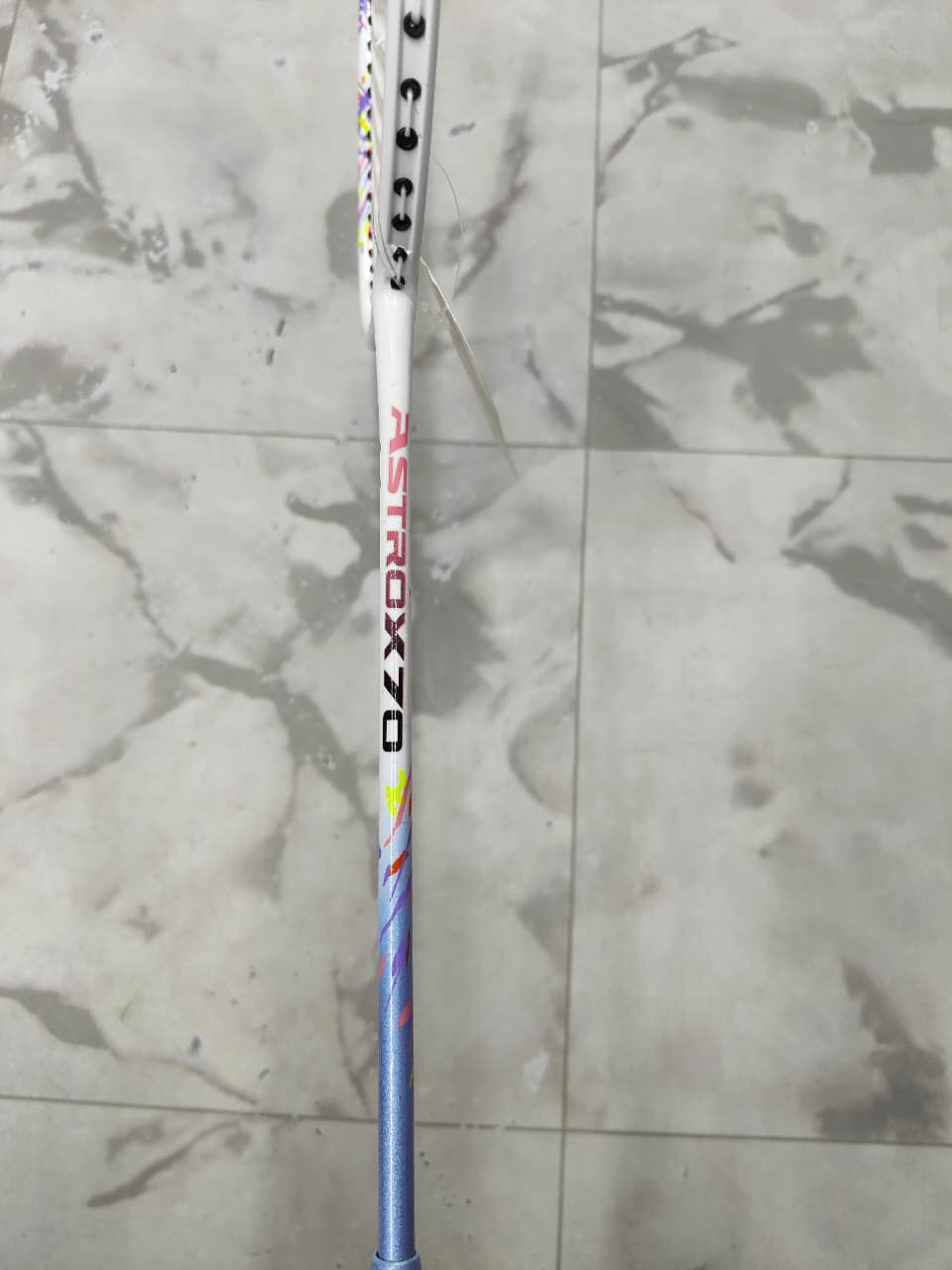 Brand: Yonex Model: Astrox 70 Type: Badminton Racket Bat Flex: Stiff Shaft: H.M. Graphite with NANOMETRIC technology Frame: H.M. Graphite, Tungsten-infused